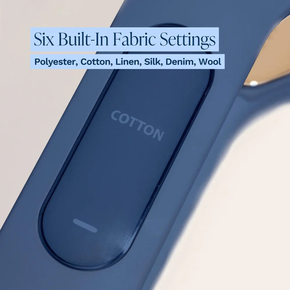 - 6 Fabric Settings: Poly, Silk, Cotton, Denim, Wool, Linen